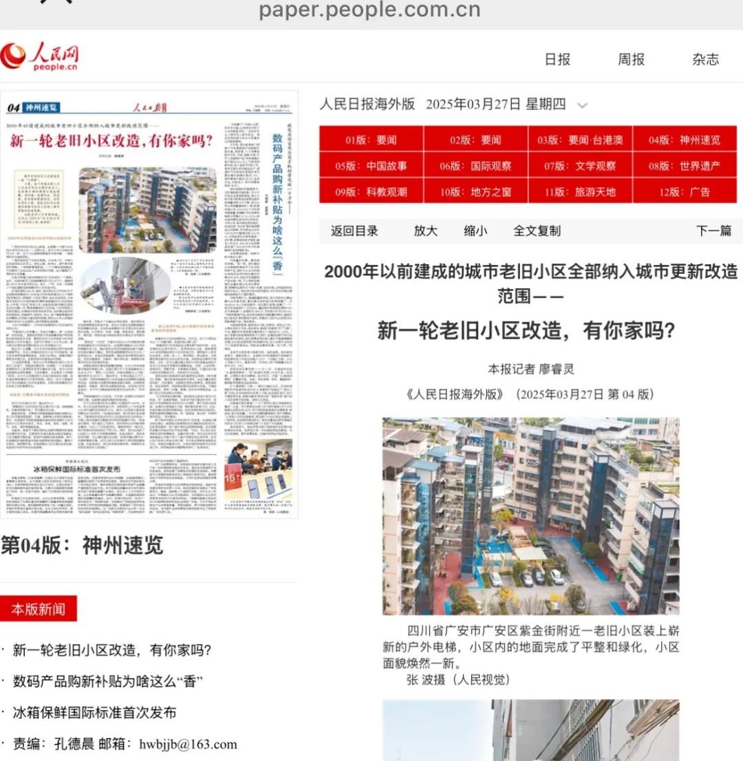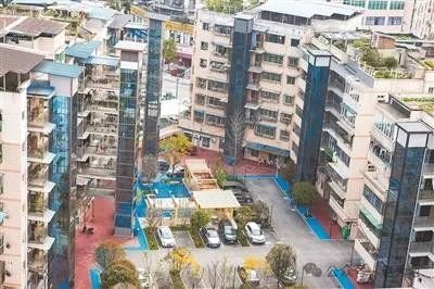 四川省广安市广安区紫金街附近一老旧小区装上崭新的户外电梯,小区内的地面完成了平整和绿化,小区面貌焕然一新。张 波摄(人民视觉)