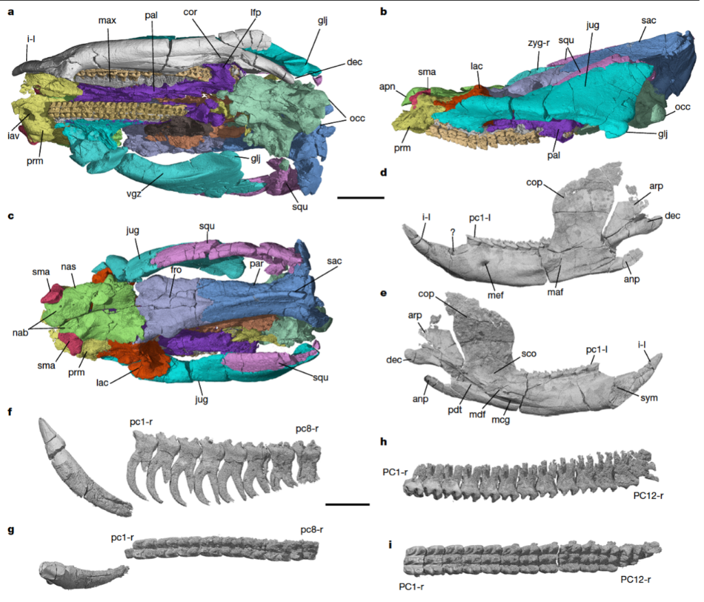 川南多齿兽头骨重建示意图。(中国科学院古脊椎动物与古人类研究所供图)