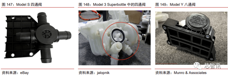 1)Model S/Y 四通阀:特斯拉在第二代热管理系统上首次引入四通阀结构,实现了电机回路与电池回路的串并联切换。