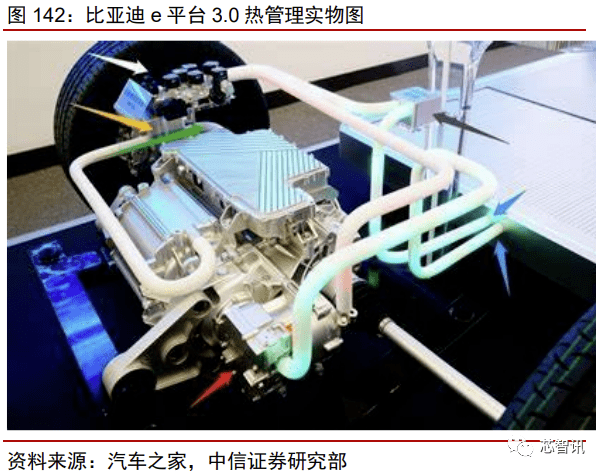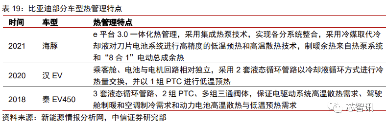 4)比亚迪:乘员舱加热取消 PTC,热管理系统集成一体化不断完善。