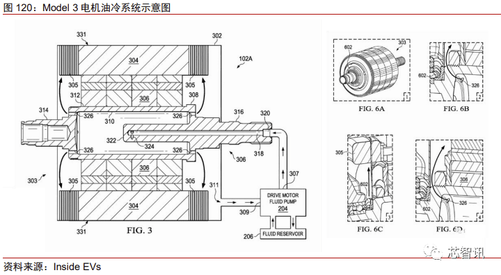 Model S→Model 3:由水冷向油冷切换。早期 Model S 采用水冷系统进行电机热管 理,但因是机壳液冷无法对绕组直接冷却,冷却效率较低。后特斯拉电机均以油路冷却方 案为主,散热能力和电机功率密度明显提高。