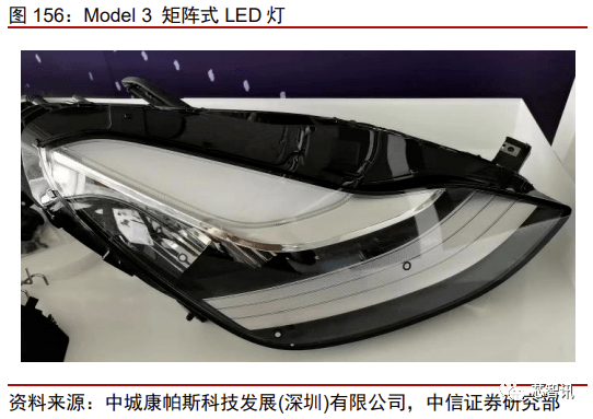 从 Model 3 的拆车情况来看,传统零部件维度,Model 3 及特斯拉其他车型在车身材料及工艺、车灯、玻璃和底盘上有许多新技术应用。我们在零部件端进行了进一步的拆解分析,具体如下。