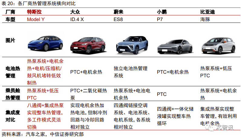 同行比较:高集成热管理为行业共识,传统车厂和新势力逐步追赶