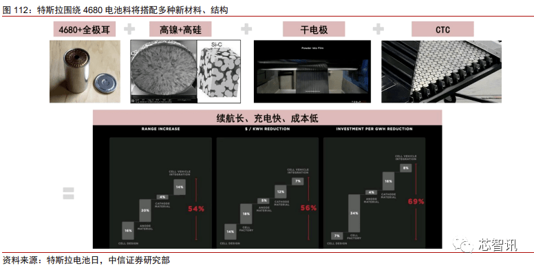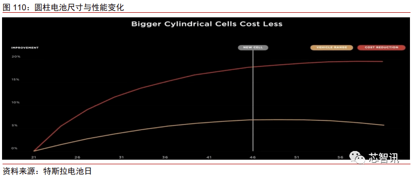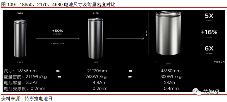 4、电芯:从 18650 到 2170 再到 4680,成本降低、续航里程提升