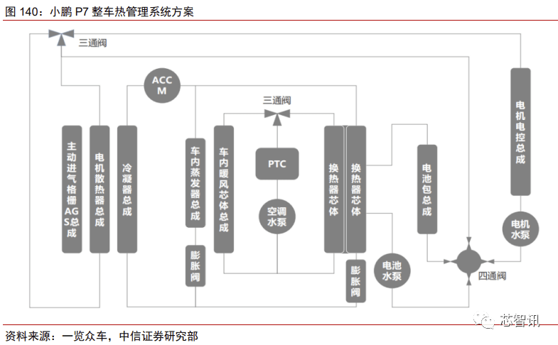 3)小鹏:储液罐一体化及四通阀实现整车热循环,热管理集成继续发展。